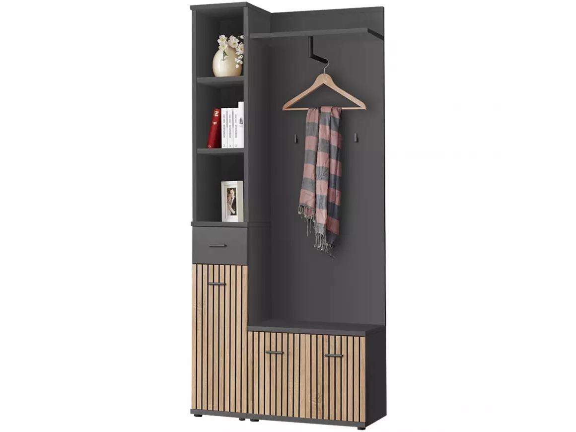 Botník s polštářkem Mablo (antracit + dub artisan + černá)