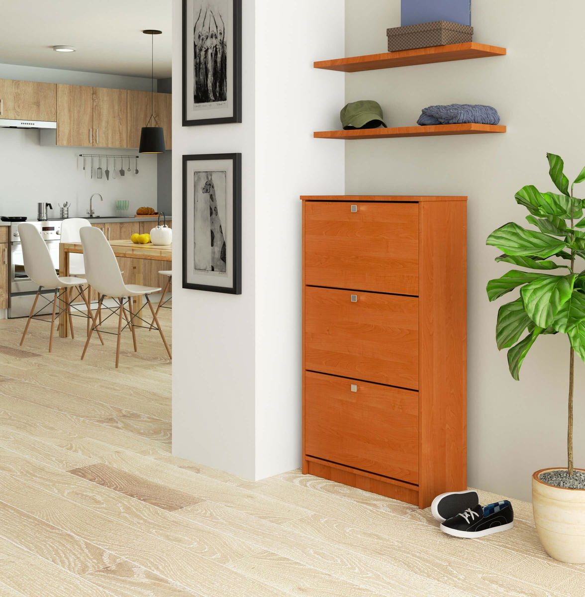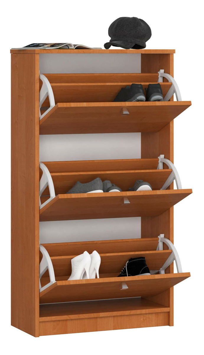 ZobrazitSkříňka na boty Satori sestává ze tří polic určených pro uložení obuvi. Nábytek je vyroben z otěruvzdorné laminované desky o tloušťce 16 mm a jeho hrany jsou pokryty ABS hranami zajišťujícími odolnost proti poškození. Skříňka jistě dobře poslouží v každé chodbě, pozitivně překvapí svým nadčasovým vzhledem a komfortem každodenního používání. Čela dveří jsou vyrobena z laminované desky. Úchytky jsou stříbrné barvy.