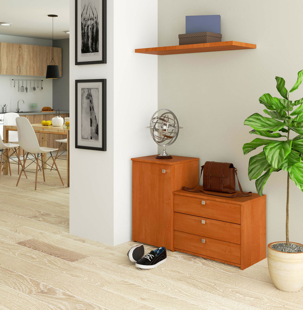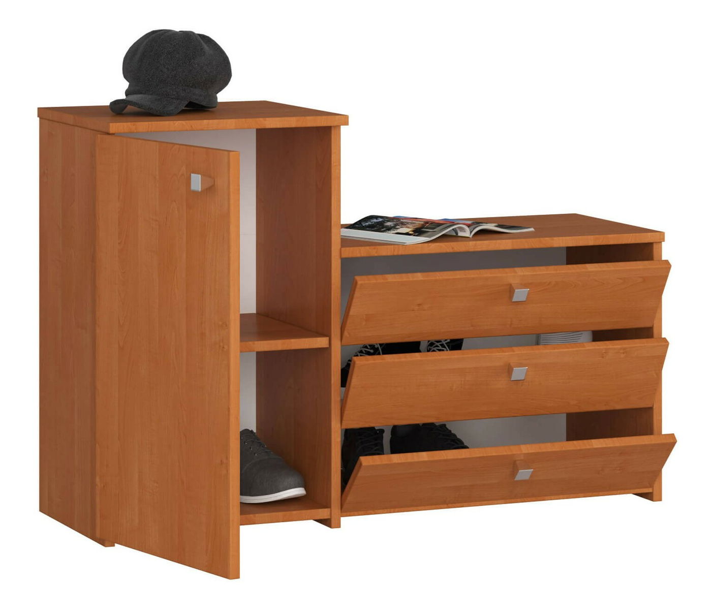 ZobrazitPokud jste ve stádiu zařizování si předsíně a hledáte solidně vyrobený nábytek v klasickém provedení, který zároveň také zajišťuje funkčnost a šetří místo, tak skříňka na boty Sirocco bude ta pravá. Skládá se ze dvou částí - otevírá se dvířky, včetně dvou polic a tří šuplíků na boty. Díky tomu se do skříňky vejdou všechny předměty potřebné v předsíni - nejen boty, ale také čepice, šály a rukavice. Za pozornost stojí cena skříňky a její solidní zpracování. Nábytek se výborně kombinuje s ostatními výrobky z této kolekce. Díky tomu si budete moci zařídit působivou a funkční místnost, která splní očekávání i těch nejnáročnějších zákazníků našeho internetového obchodu. Skříňka na boty je vyrobena z laminované desky o tloušťce 16 mm. Viditelné hrany jsou pokryty ABS dýhou zvyšující odolnost proti poškození.