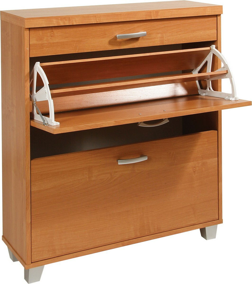 ZobrazitElegantní širší botník (nebo skříňka) do určený do Vaší předsíně. Botník se skládá ze 3 výklopných zásuvek a je použitelný na více párů bot. Střední podélná dřevěná oddělovací příčka ve výklopné zásuvce je odnímatelná s cílem zvětšit objem pro rozměrnější boty, například v zimním období. Dodává se v barevném