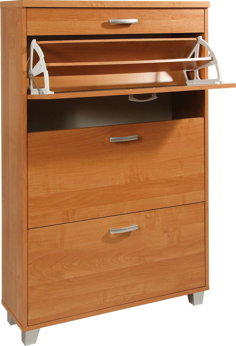 ZobrazitElegantní širší a vyšší botník (nebo skříňka) do určený do Vaší předsíně. Botník se skládá ze 3 výklopných zásuvek a je použitelný na více párů bot. Střední podélná dřevěná oddělovací příčka ve výklopné zásuvce je odnímatelná s cílem zvětšit objem pro rozměrnější boty, například v zimním období. Dodává se v barevném