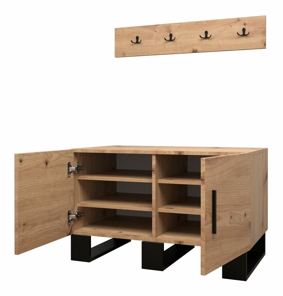 Botník (skříňka na boty) Amanda (dub artisan) (s věšákovým panelem)