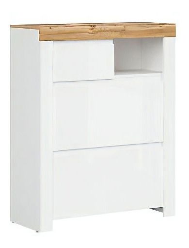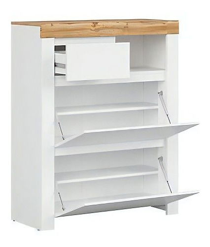 ZobrazitBotník obsahuje jeden otevřený prostor a jednu zásuvku na uskladnění jiných drobností. K dispozici je úložný prostor pro obuv v podobě dvou skříněk se sklopnými dvířky. Každá skříňka obsahuje jednu polici a svým barevným provedením patří do každého moderního interiéru. Materiál: Nábytková deska.