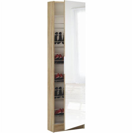 Botník Kapater je kousek, který oživí vaši předsíň. Obsahuje šest kovových polic a do jedné řady se vejdou cca tři páry bot. Není to jen obyčejný botník ale získáte i zrcadlo, které je připevněno na přední straně. Dveře botníku jsou univerzální a otevírají se pomocí úchytky.