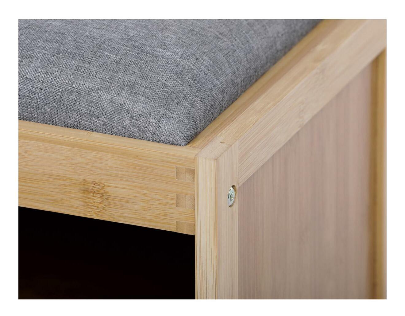Tento botník je ideálním doplňkem do vaší předsíně či jiné místnosti. Vyroben z masivního bambusu v přírodní barvě, nabízí nejen pohodlnou polstrovanou sedací plochu v šedém odstínu, ale také praktický úložný prostor. Skandinávský styl tohoto botníku dodá vašemu interiéru moderní a útulný vzhled. Robustní konstrukce zajišťuje dlouhou životnost a stabilitu. Tento multifunkční kousek vám pomůže udržet pořádek a přidá stylový prvek do vašeho domova.