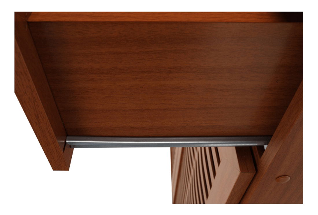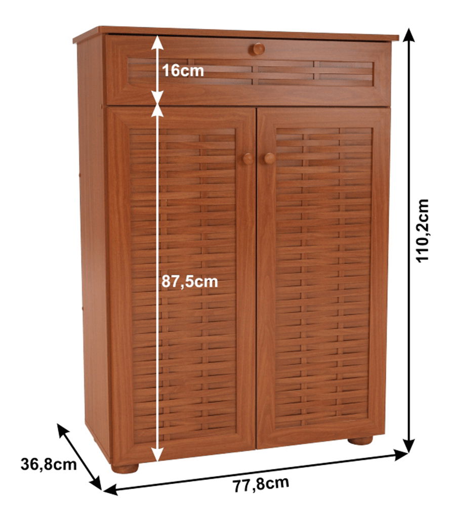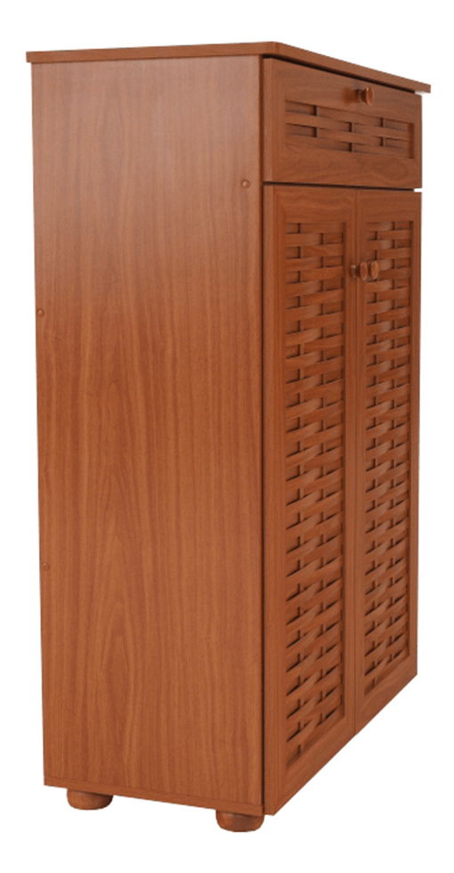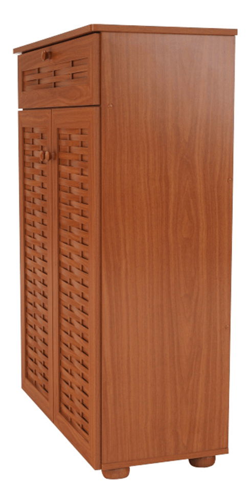 Botník Fembi-03 je skříňka na boty se dvěma dvířky a jedním šuplíkem v horní části. Je vyroben z MDF laminované třešně amerického provedení. Rozměry jsou 77,8x36,8x110,2 cm. Produkt se dodává v demontu.