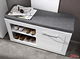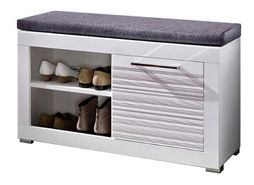 Elegantní široký botník (botník) s 1 poličkou umístěnou na levé straně a jedním uzavřeným úložným prostorem na pravé straně. Botník je vybaven komfortním čalouněným horním sedákem, který dodá pocit útulnoti.