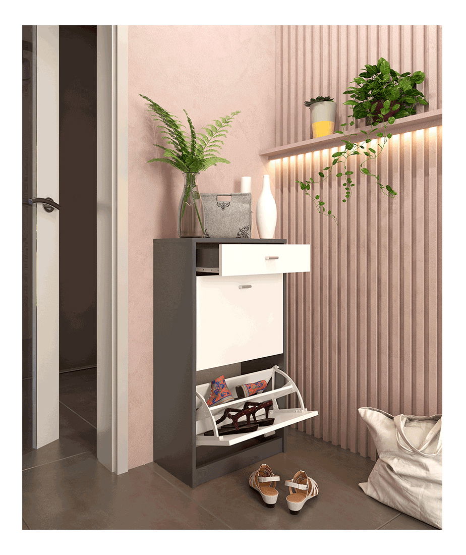 Botník (skříňka na boty) Kerjat Typ 1 (bílá + grafit)