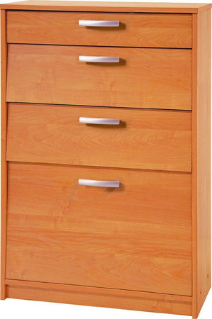ZobrazitElegantní botník Kerry 7 o výšce 113 cm, šířce 76 cm a hloubce 39 cm je ideální doplněk pro Vaši předsíň. Tento užší botník disponuje 3 výklopnými šuplíky, které poskytují dostatek místa na uskladnění bot. Nad zásuvkami se nachází mělčí zásuvka, která je ideální na drobnosti jako například vložky do bot nebo obuvnické kartáče. Botník je vyroben z kvalitní jasanové dřevěné desky, což zaručuje jeho pevnost a odolnost vůči poškození. Jeho jednoduchý a elegantní design dokonale ladí s každým interiérem.