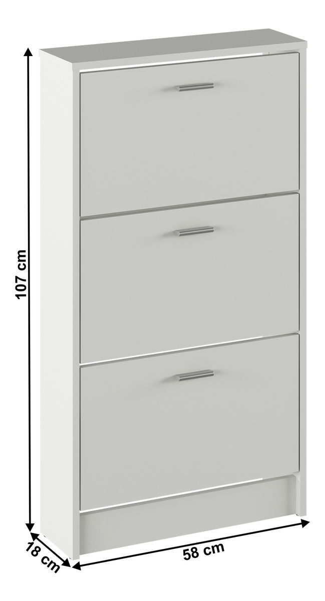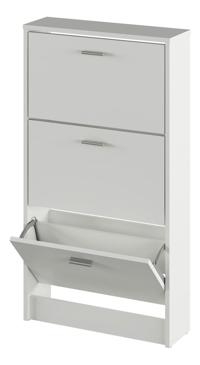 Ustavičný problém s uskladněním bot? Vyřešte jej s třířadým botníkem Mobby 13, který udrží pořádek ve vaší předsíni. Botník je vyroben z laminované dřevotřísky v bílém barevném provedení. Poskytuje dostatek úložného prostoru v podobě tří výklopných šuplíků. Praktický botník Mobby 13 dodá vaší předsíni nový vzhled, který bude působit uspořádaně a organizovaně.