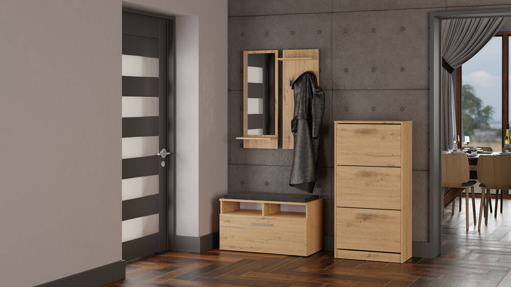 ZobrazitBotník Permanente 1 v elegantní barvě dub artisan je ideálním řešením pro každý předpokojový prostor. Tento praktický kus nábytku, vyrobený z kvalitní laminované dřevotřísky, nabízí odolnost vůči opotřebení a snadnou údržbu. S jeho kompaktními rozměry 60 cm na šířku a 116 cm na výšku se vejde i do menších prostor, přičemž uchová vaše boty přehledně uspořádané za úchytnými dvířky. Vnitřní dvouřadý košík na boty z plastu zajišťuje maximální funkčnost a pohodlí při používání. Tento botník je skvělou volbou pro moderní domácnosti.
