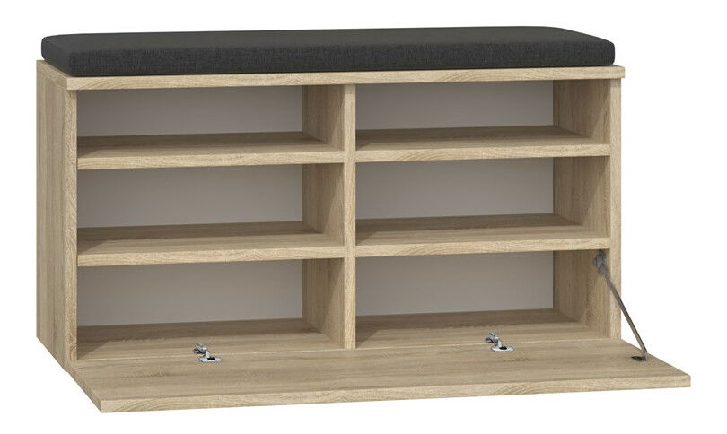 Botník Reclemos 1 v elegantní barvě dub sonoma je ideálním řešením pro každou domácnost, která si cení kombinace stylu a funkčnosti. Tento moderní nábytek nabízí praktické sezení a dostatek úložného prostoru díky šesti poličkám, které jsou skryty za uchylnými dveřmi. Vyroben z kvalitní laminované dřevotřísky o tloušťce 16 mm, je odolný vůči poškození a snadno se udržuje. S rozměry 85 cm na šířku a 35 cm na hloubku se skvěle hodí i do menších prostor. Tento botník je nejen praktický, ale také esteticky příjemný doplněk do vašeho interiéru.