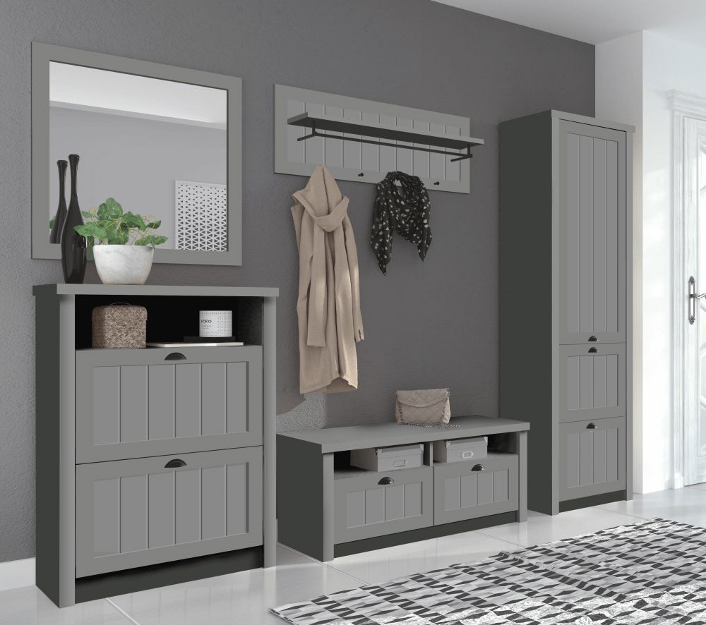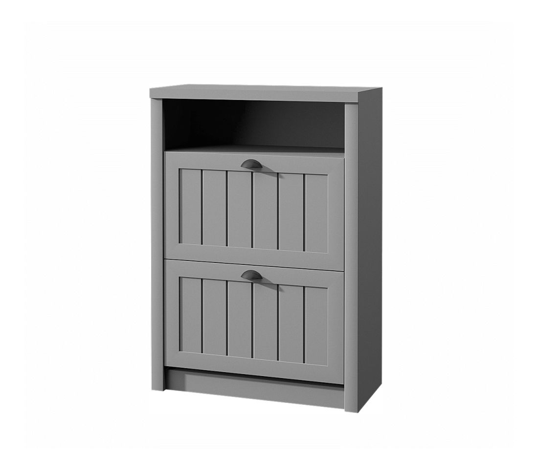 Botník SNB Provense (šedá) je moderní úložný nábytek vyrobený z DTD laminované desky. Šedá barva a jednoduchý design dělají z něj skvělý doplněk do každé domácnosti. S rozměry 80x36x113 cm a tloušťkou materiálu korpusu 15 mm je dostatečně velký pro úložení obuvi a ostatních věcí. Vrchní deska má tloušťku 22 mm. Botník má otevřený úložný prostor s policí, dva výklopné zásuvky a úchyty pro snadné otevírání. Nábytek se dodává v demontu, což umožňuje jednoduchou montáž.