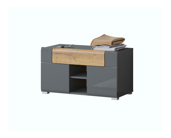 Botník (skříňka na boty) - Talvar (lesk antracit + dub grandson) - Funkční a minimalistický kousek do vaší domácnosti! S rozměry 92 x 91 x 40 cm Vám poskytne spoustu úložné kapacity a díky čistým liniím s lehkostí zapadne do každého moderního interiéru.