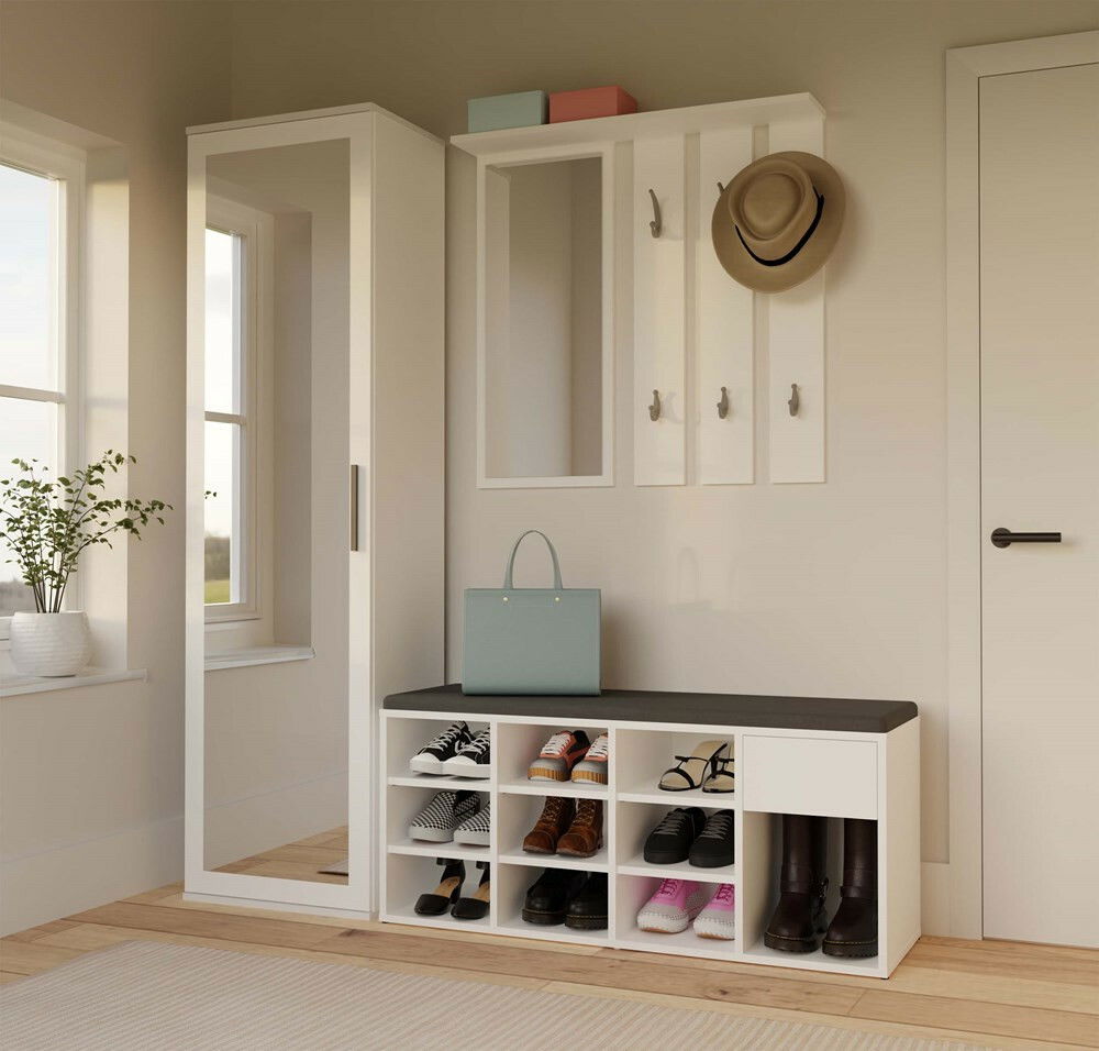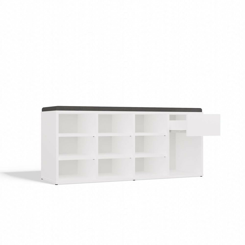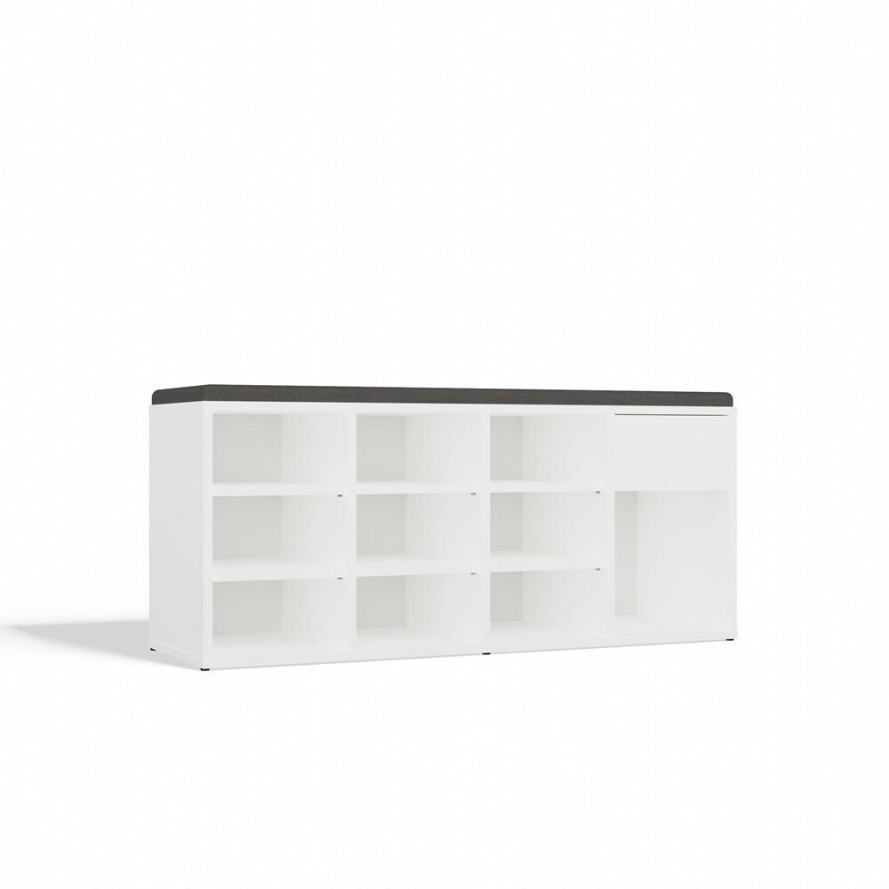 Botník Telos 1 je praktickým a estetickým řešením do každého předsíně, který kombinuje pohodlí s dostatkem úložného prostoru. S bílou barvou a moderním designem se skvěle hodí do různých interiérů. Tento nábytek nabízí až 9 otevřených přihrádek na obuv, praktický šuplík na drobnosti a vysokou komoru, ideální pro uskladnění vyšších bot či doplňků. Tapicerované sezení zajišťuje komfort při obouvání, zatímco stabilní konstrukce z laminované desky zaručuje dlouhou životnost. Telos 1 je ideálním doplňkem pro organizaci vašich bot a příslušenství.