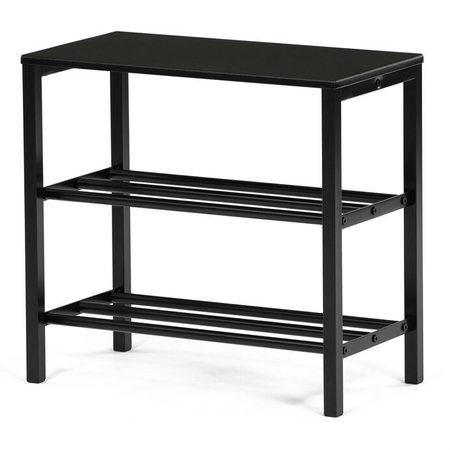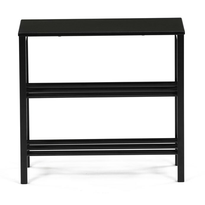 Stylový a praktický botník je perfektní volbou pro každou moderní předsíň. Jeho elegantní černé provedení s kovovou konstrukcí zajišťuje odolnost a dlouhou životnost. Botník nabízí dvě prostorné police, které poskytují dostatek místa pro uskladnění obuvi, zatímco horní desku můžete využít k dekoraci nebo drobnosti. Díky minimalistickému designu se snadno začlení do jakéhokoli interiéru. Tento botník kombinuje funkčnost s jednoduchým a čistým vzhledem, který vám pomůže udržet předsíň vždy uklizenou.