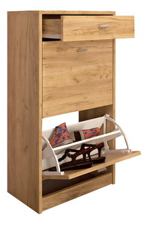 - Vyklápěcí botníky patří k nejpoužívanějším. Jejich obrovskou výhodou je malá náročnost na prostor. Do těchto botníků se totiž boty ukládají na stojato, takže jejich hloubka může být pouhých 17 cm. Právě proto jsou nestabilní, často se tedy připevňují ke stěně a nejsou uzpůsobeny na vyšší obuv.