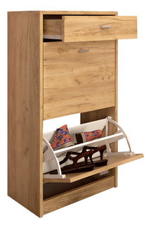 2. Vyklápěcí botníky patří k nejpoužívanějším. Jejich obrovskou výhodou je malá náročnost na prostor. Do těchto botníků se totiž boty ukládají na stojato, takže jejich hloubka může být pouhých 17 cm. Právě proto jsou nestabilní, často se tedy připevňují ke stěně a nejsou uzpůsobeny na vyšší obuv.