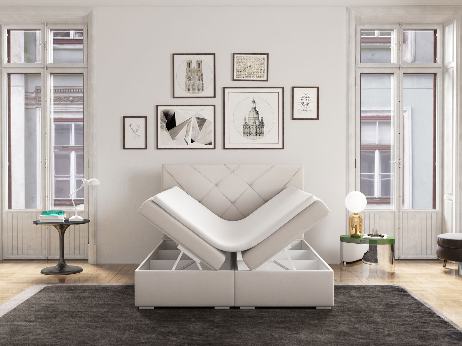 Boxspring postel 140 cm Darro (bílá) (s úložným prostorem)