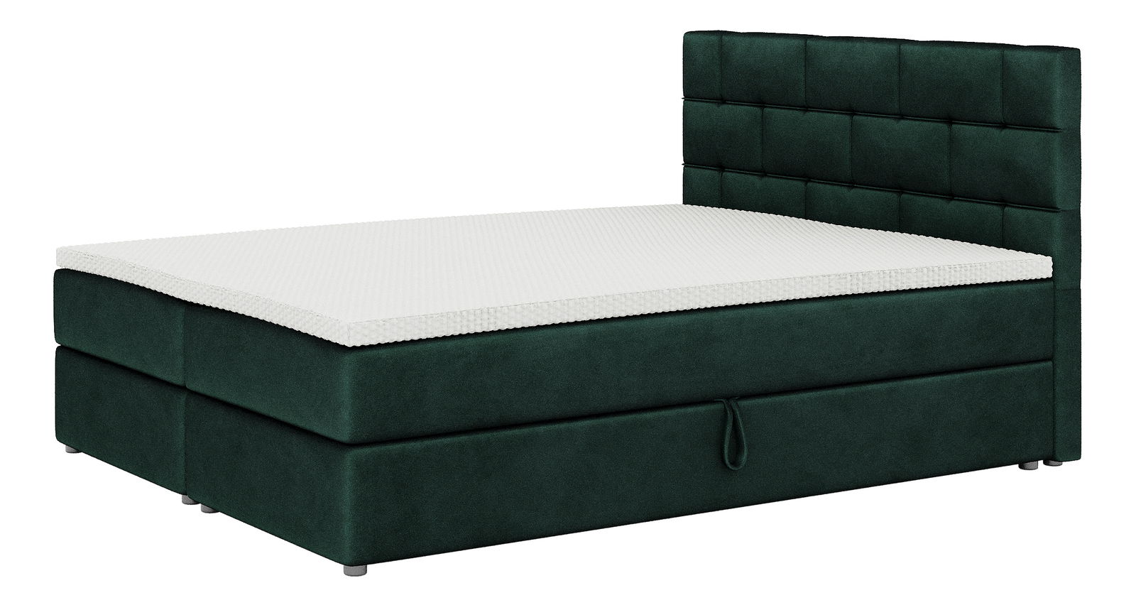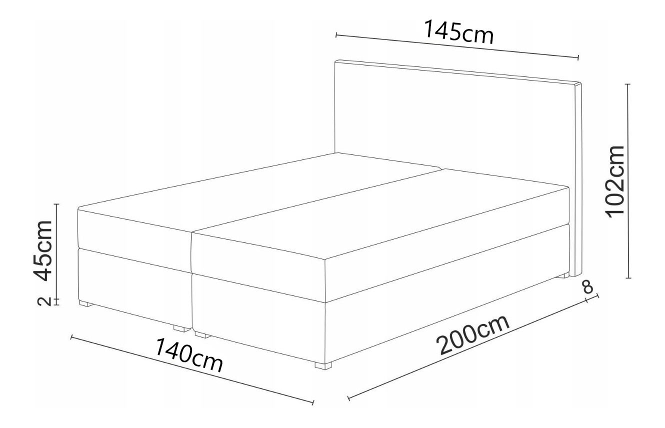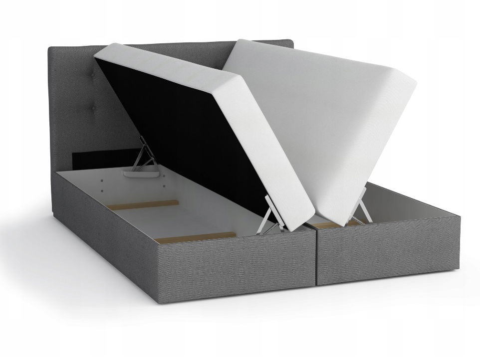 ZobrazitVysoká komfortní postel Boxspring je hitem na dnešním trhu s postelemi. Vyšší ložná plocha umožňuje snazší vstávání z postele. Spodní matrace je z kvalitních bonellových pružin a nahrazuje lamelový rošt. Na vrchu postele se nachází 4 cm tlustý topper, který je možno si doobjednat. Postel obsahuje úložný prostor přístupný zboku.