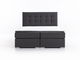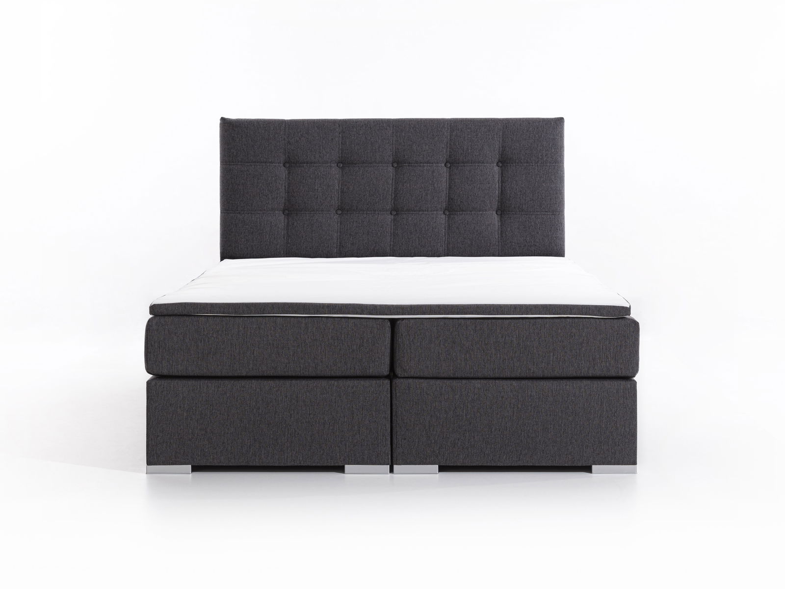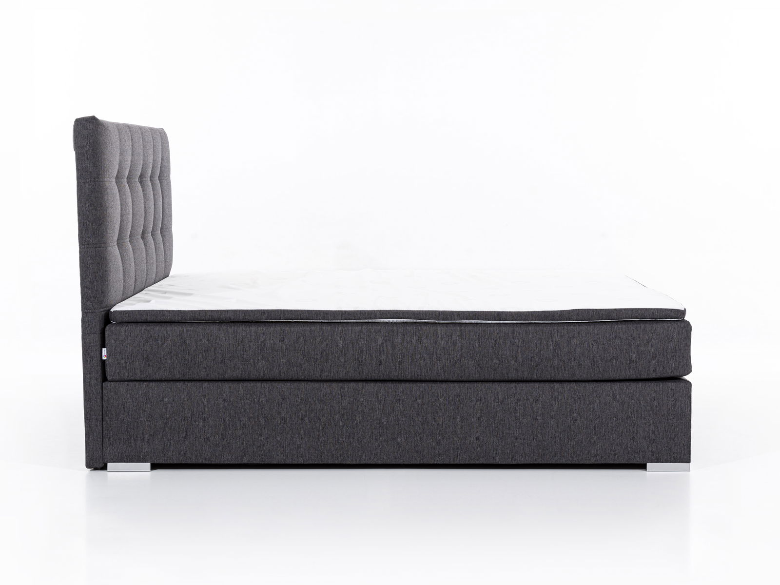 ZobrazitManželská postel Boxspring 160 cm Irma 01 (černá) je luxusní a čalouněná postel, která má vysoké záhlaví zdobené knoflíky a prošitím. Díky tomu vypadá elegantně a působí na první pohled velmi pohodlně. Postel nabízíme v několika barevných variantách, abyste si mohli vybrat tu, která se vám nejvíc líbí. Materiál je vyroben z borovice a polyesteru a výplň tvoří pěna T2542 a Bonnel matrace, která je vysoká 20 cm a má tvrdost H3. Bonnel matrace je vybavena dvěma vrstvami, které jsou vyrobeny z měkké a pružné pěny T25, což zajišťuje pohodlí a vysokou kvalitu spánku. Topper o výšce 4 cm je také z pěny T26 pro ještě větší pohodlí. Postel má nosnost až 220 kg a nabízí plochu spaní 160x200 cm. Výška čela postele je 105 cm, nožičky jsou vyrobeny z plastu a mají výšku 3 cm. Zip na potahu umožňuje snadné a pohodlné mytí potahu v pračce při teplotě 40°C. Postel neobsahuje rošt a úložný prostor. Rozměry balení č.1 jsou 202x85x52 cm a váží 116 kg.