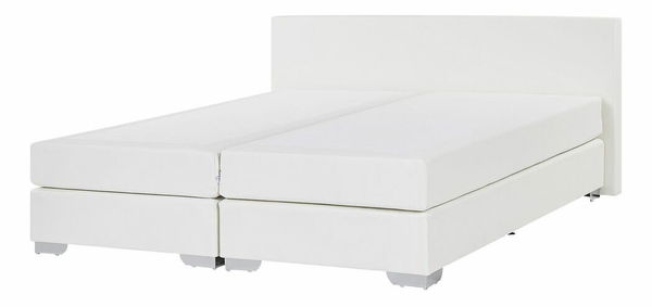 Tato kontinentální postel, která se výborně hodí do moderních a tradičně zařízených ložnic, se stane pohodlným středem vaší ložnice. Pevná konstrukce je vyrobena ze dřeva a je doplněna flexibilními pružinami, které poskytují ideální základ pro matraci. Jednoduchý design chromovaných nohou dokonale zvýrazňuje klasické bílé čalounění z umělé kůže. Tato postel se dodává s pružinovou matrací s úrovní tvrdosti H2. Jeho ergonomický design zaručuje skvělou oporu pro vaši páteř.