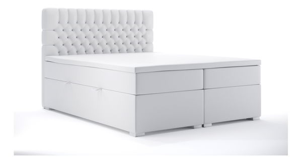 Boxspring postel 180 cm Daliny (bílá ekokůže) (s úložným prostorem)