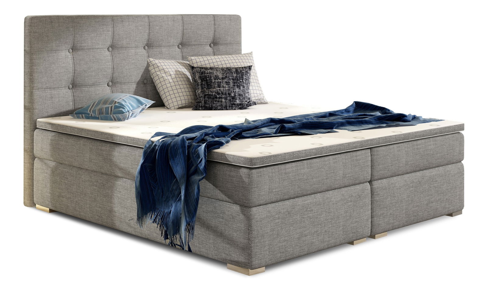 Manželská postel Boxspring 180 cm Irma 01 (béžová) o výšce 105 cm a hloubce 205 cm Sawana 21 je čalouněná postel s vysokým záhlavím zdobeným knoflíčky a prošíváním. V nabídce máme několik barevných variant. Materiál je z borovice a polyesteru s výplní pěnou T2542 a Bonnelem. Matrace je s tvrdostí H3, o výšce 20 cm a dvěma vrstvami z měkké a pružné pěny T25. Topper je také přítomen a má výšku 4 cm z pěny T32. Postel má nosnost 220 kg a rozměry plochy na spaní jsou 180x200 cm. Zip na potahu je také přítomen a potah postele lze vyprat na 40°C. Výška nohou postele je 3 cm a nožičky jsou z plastu. Rozměry balení č.1: 202x95x52 cm a váží 129 kg. Úložný prostor a rošt nejsou součástí postele.
