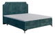 Postel Lexa vás přenese do dob 20. let do stylu art deco. Zajímavá zelená mořská barva postele dodá ložnici nádech elegance. Manželská postel se skládá ze dvou samostatných lůžek, které lze vyklopit z boční strany. Po zvednutí matrací se zjeví úložný prostor na každé straně. Postel stojí na vyšších (13 cm) šedých kovových nožičkách. Na pružinových matracích je položen jeden velký topper. Víceúrovňová konstrukce je vysoká 53 cm. Vnitřek postele je z bílé desky o tloušťce 16 mm. Čelo postele je polstrované 3 cm široké a po celém okraji jsou cvočky o průměru 2 cm.