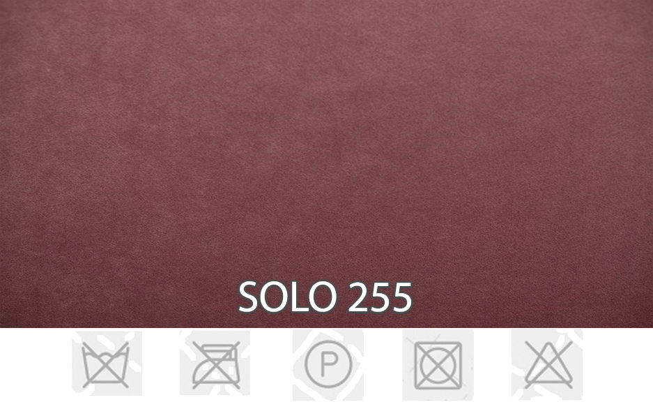 Potahová látka Solo má vzhled sametu a je velmi příjemná na dotek. Látka Solo má speciální povlak Waterproof a Easyclean, který odpuzuje vodu a snadno se čistí. Složení: 100% polyester. Gramáž: 320g/m² +/- 5%.