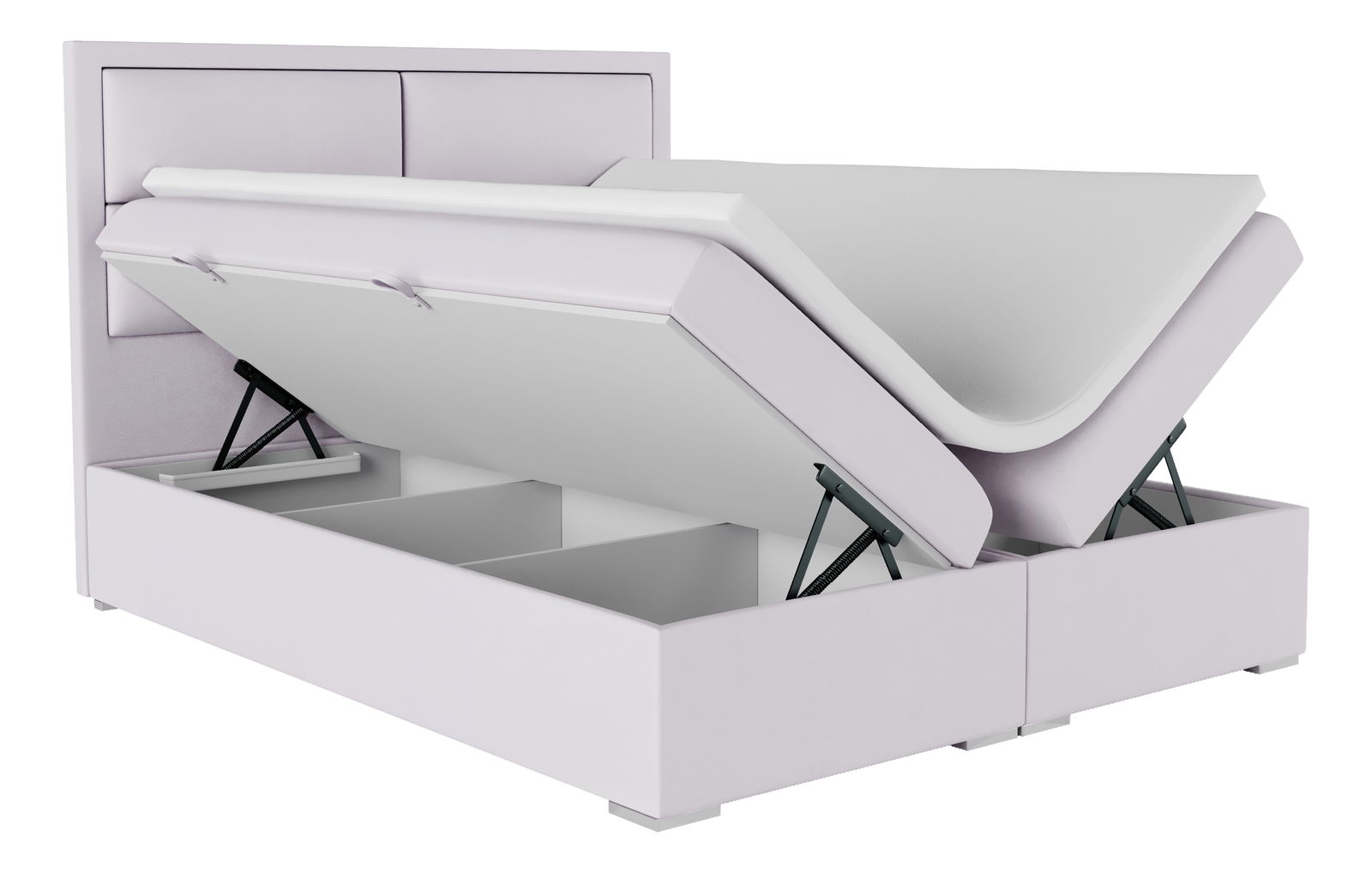 ZobrazitSoučástí postele je také matrace s topperem, která se postará o váš dokonalý spánek. Konstrukce postele je z laminované dřevotřísky (16 mm) bílé barvy. Určitě ocenníte i úložný prostor který je výklopný z boku. Dostanete se k němu vyklopením roštové desky s matrací z boční strany postele. Matrace je vyrobena pěny T-25 a pružiny Bonell o výšce 20 cm. Vrchní matrace (topper) je vyrobena z pěny T-25 o výšce 5 cm. Nožičky postele jsou vyrobeny z plastu v šedé barvě.