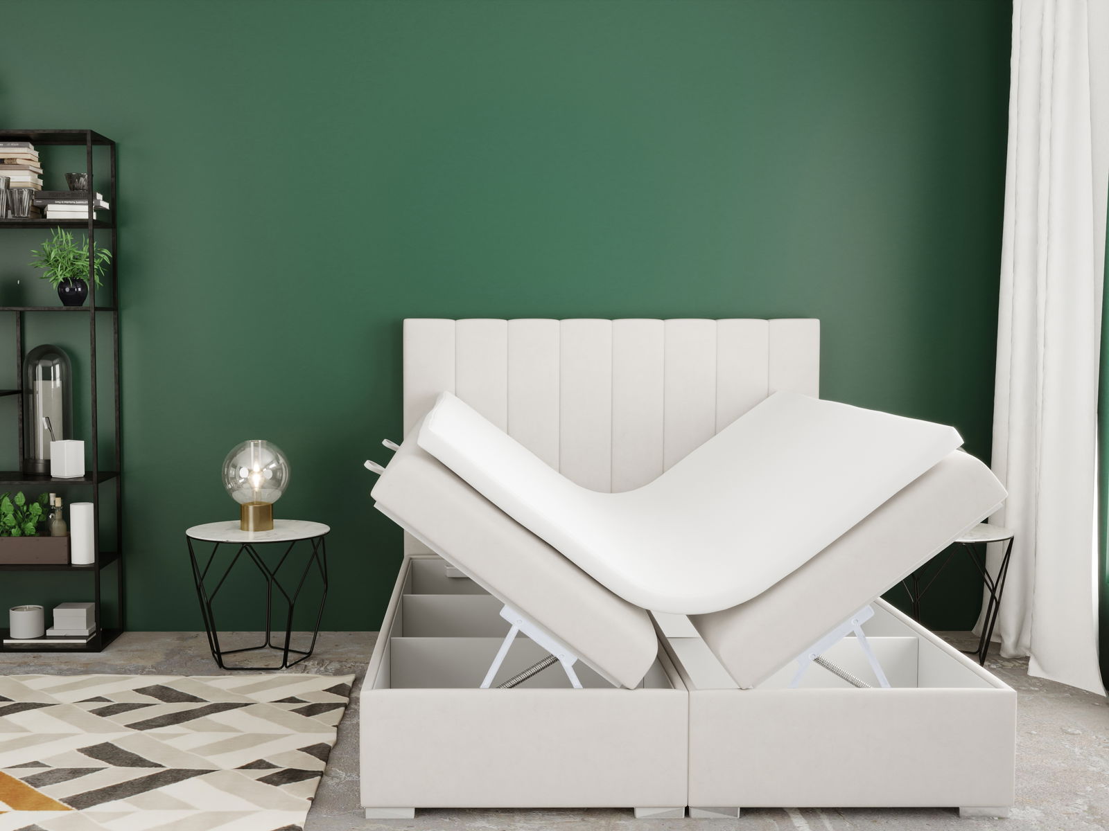 Boxspring postel 180 cm Pugno (smetanová) (s úložným prostorem)