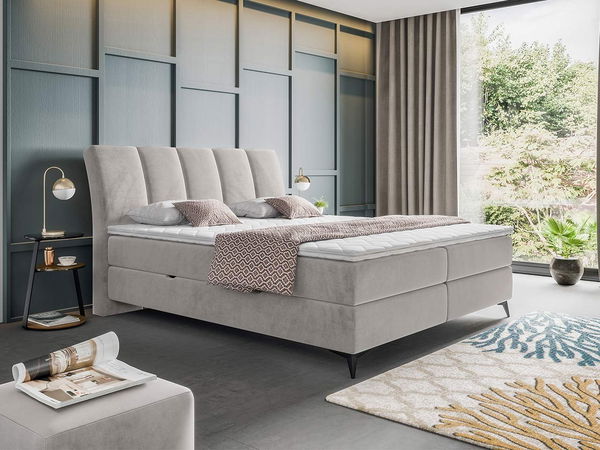 Kontinentální postel Basil je jako stvořená do moderní ložnice. Je elegantní a dokonale doplňuje interiér místnosti. Má vysoké, čalouněné a módně prošívané čelo. Je složena z pevného rámu, který zajišťuje stabilitu celého kusu nábytku. Komfortní matrace je vyrobena z bonellových pružin a speciální pěny, která poskytuje pocit zvýšeného komfortu. Další výhodou postele jsou dva úložné prostory. Jsou vybaveny speciálními zvedáky, které usnadňují jejich každodenní otevírání.