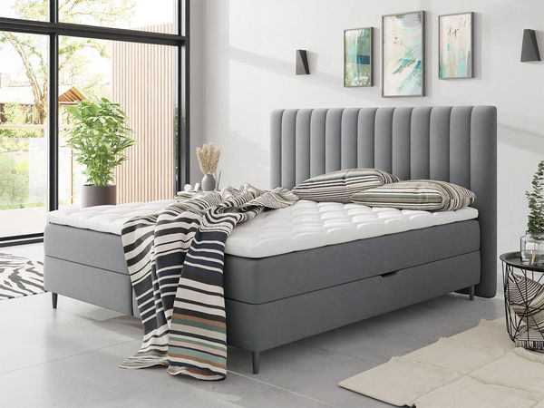 Kouzlo kontinentální postele s úložným prostorem Beatrice zdůrazňuje styl designu každé ložnice. Módní prošívané čelo dodává vzhledu malých i velkých místností nádech elegance. Symetrické pruhy bez zbytečných ozdob dodávají tělu lehkost, kterou využívá celá místnost. Tlumené barvy kontinentálního čalounění postele vytvářejí atmosféru jemnosti a harmonie, která podporuje rychlé usínání. Praktickou výhodou postele jsou až dvě přihrádky na ložní prádlo. Jedna z nich poslouží k uložení polštářů a peřin a druhá bude perfektním místem pro deku, teplé přikrývky a málo používané doplňky.