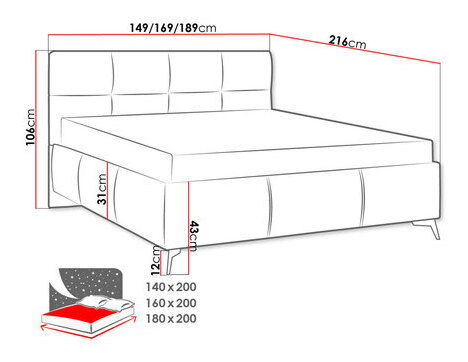 úložný prostor na ložní prádlo je vybaven plynovou pružinou. , která usnadňuje otevírání postele,