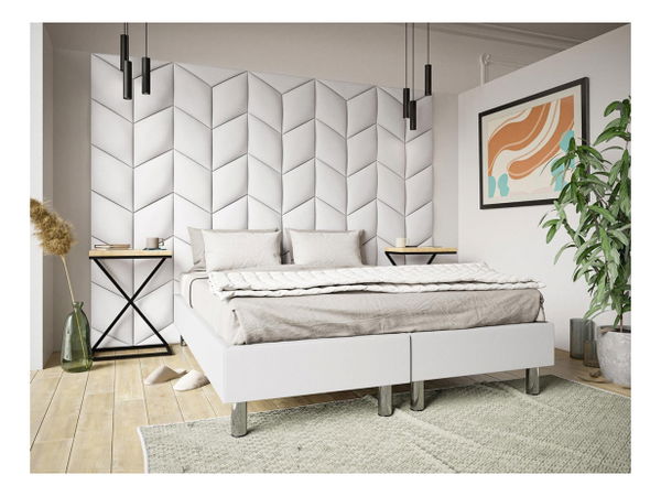 Elegantní povrchová úprava stěn - čalouněné panely. Jsou perfektní jako podpěra postele. Výhodou panelů je absorpce zvuku. Rozměr jednoho panelu je 30x30 cm.