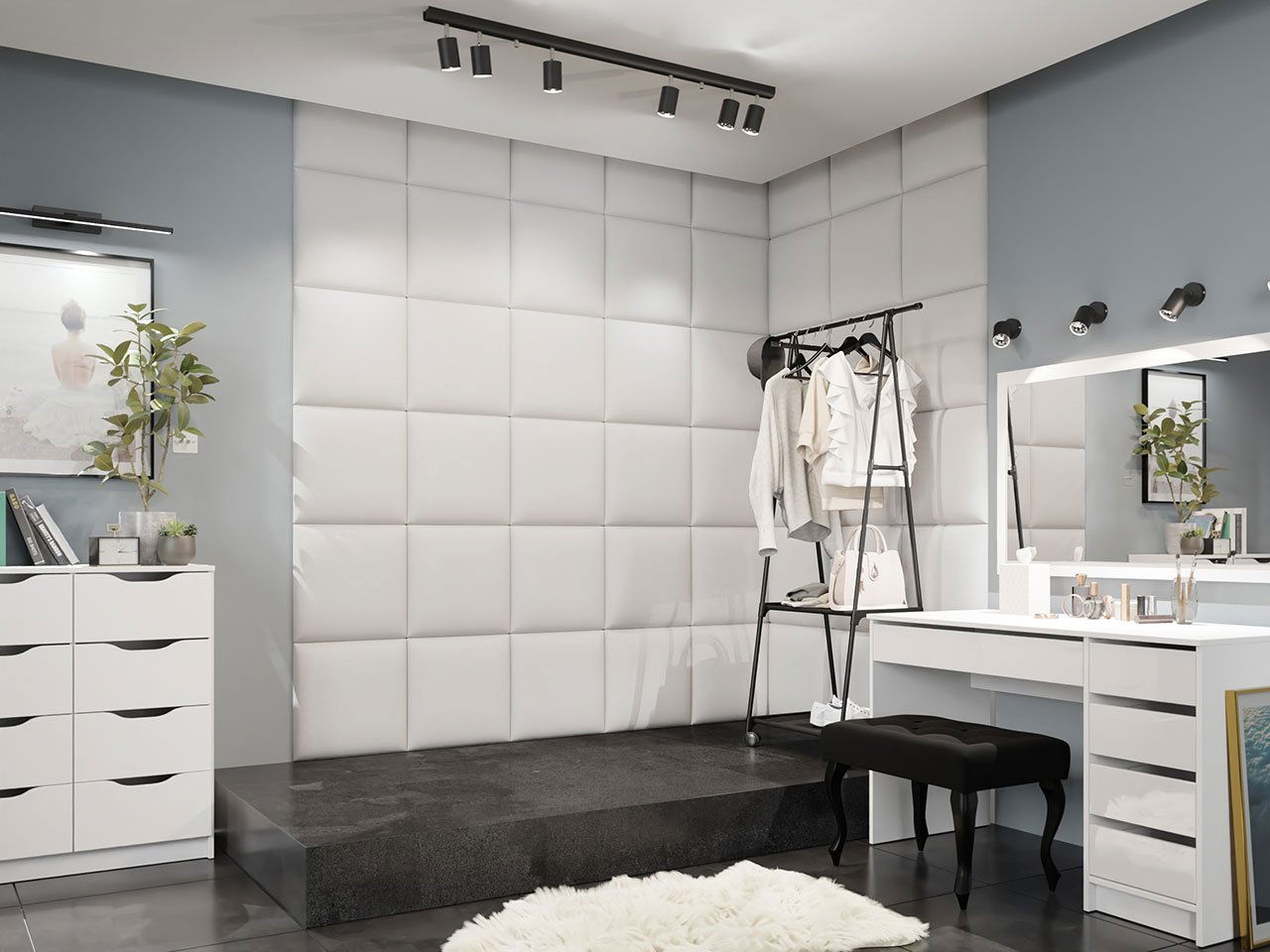 ZobrazitČalouněné panely Pazara ve tvaru symetrických čtverců jsou možností, jak vyzdobit interiér vašeho bytu. Po umístění na zeď vytvářejí zajímavý vzor a chrání omítku před nečistotami a poškozením. Měkké tvary panelů i v syrovém a chladném interiéru dodají pocit námi tak žádané útulnosti. Díky široké škále barev je lze použít v každé místnosti. Obývací pokoj, šatna i ložnice budou profitovat z módního designu stěnových panelů az jejich akustiku zlepšujících vlastností.