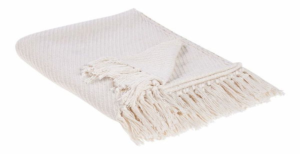 Klasická bavlněná deka v neutrální béžové barvě. Tento doplněk v tradičním designu díky svým ozdobným střapcům vynikne ve vašem interiéru a dodá mu zajímavý akcent. Deka je vyrobena z bavlny a je mimořádně měkká a odolná, díky čemuž poskytne teplo a pohodlí při používání. Díky svému designu a barvě dobře zapadne do různých interiérů.