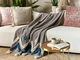 Tato přikrývka v klasické šedé barvě s barevným geometrickým vzorem a třásněmi je dokonalým doplňkem, pokud chcete vašemu domovu dodat trochu barvy a nenarušit neutrální barevnou paletu interiéru. Díky designu s ozdobnými třásněmi bude vypadat skvěle jak na pohovce, tak i na posteli. Je ručně vyrobena z odolné přírodní bavlny, což jistě ocení milovníci handmade dekorací.