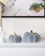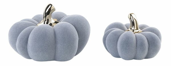 Tato sada dekorativních dýní je moderním doplňkem do vašeho interiéru. Ručně vyrobené dýně z keramiky jsou pokryty na dotek příjemnou sametovou látkou, která jim dodává elegantní vzhled. Můžete je použít ke zdobení parapetu a komody nebo jako originální nápad na dárek.