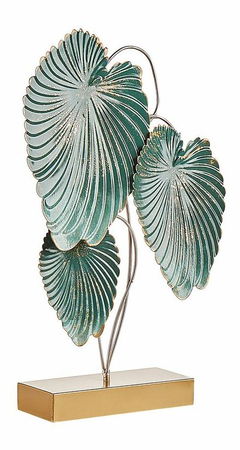 Tropickou atmosféru džungle si můžete užít doma i bez toho, abyste se vyznali v péči o květiny a rostliny. Tato dekorativní ozdoba s exotickým nádechem pěkně doplní jakýkoli styl zařízení interiéru. Modrozelené listy s mírně ošoupaným efektem a zlatý stojan vytvářejí výrazný design, který jistě upoutá pozornost vašich hostů.