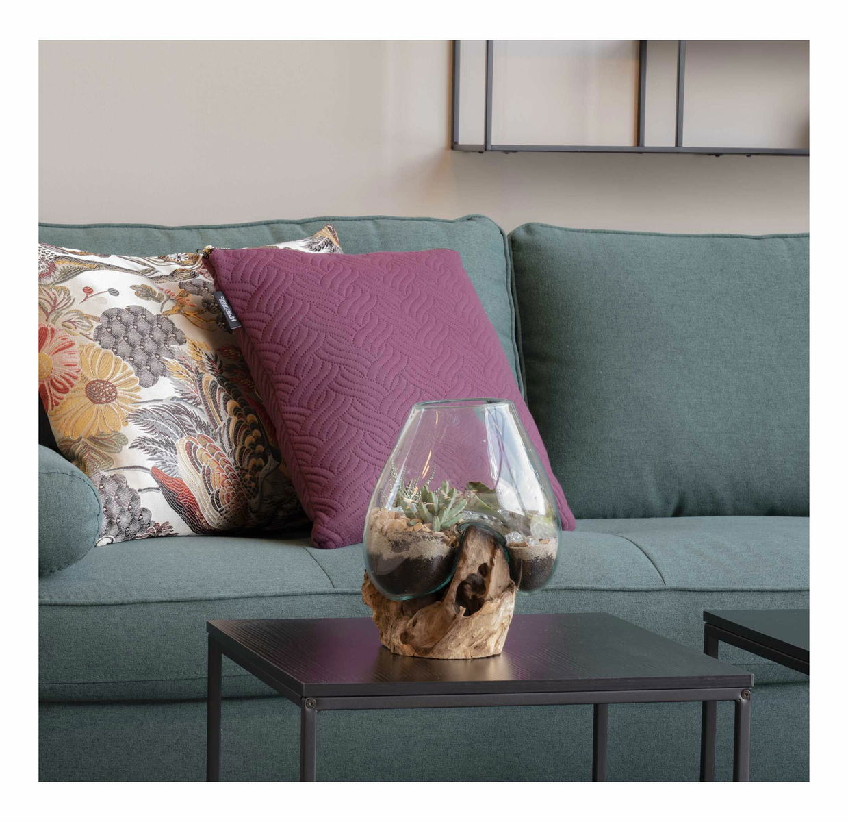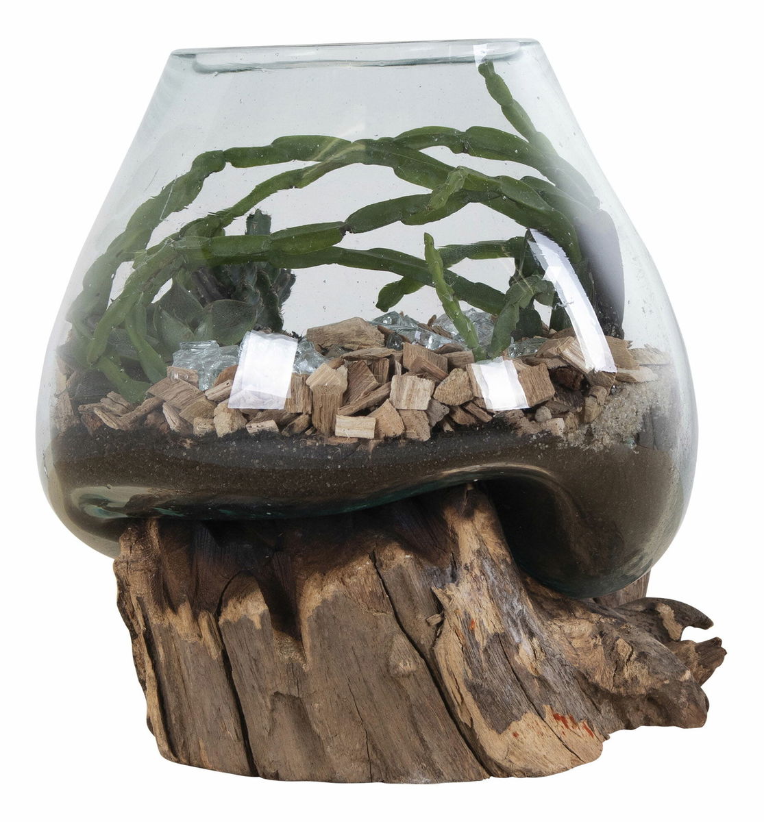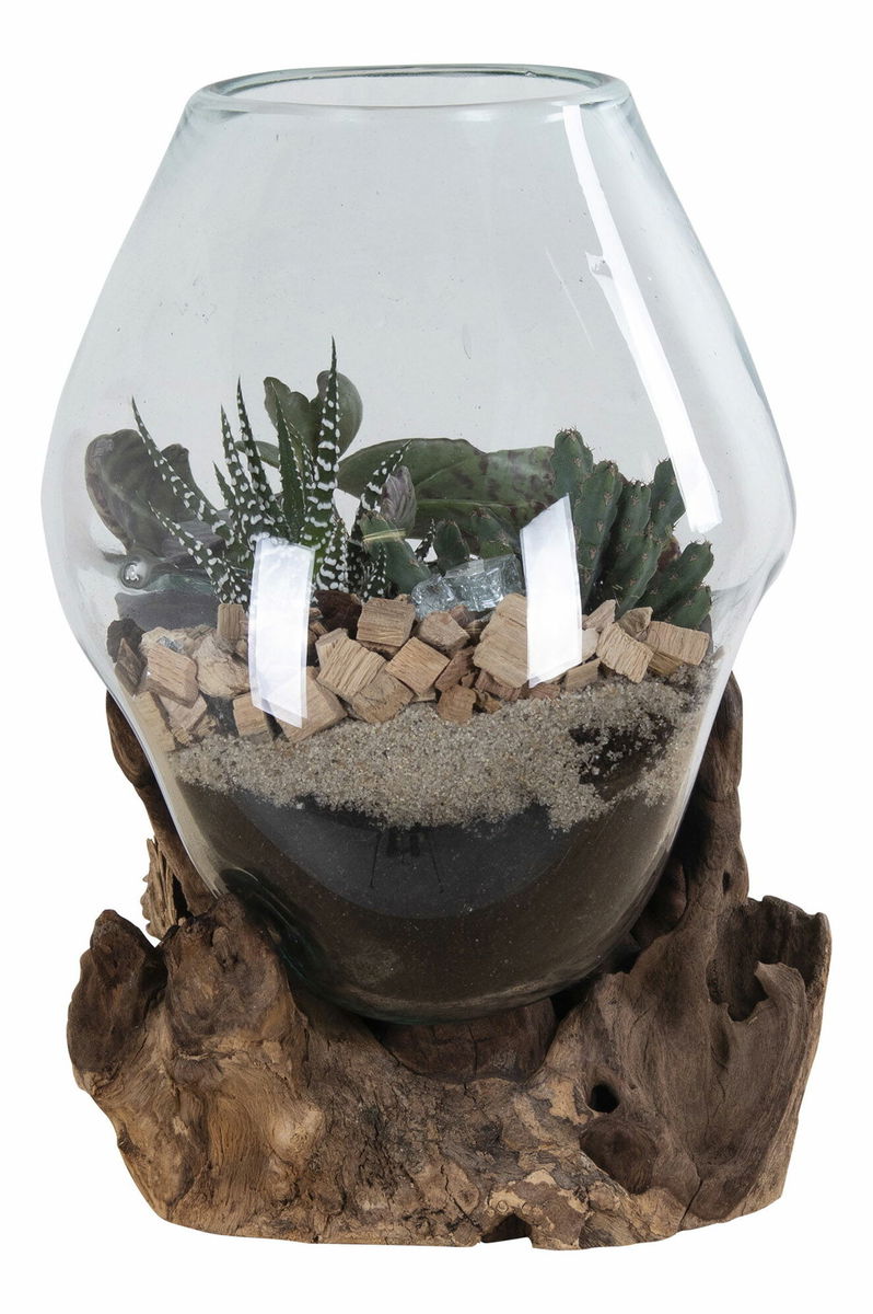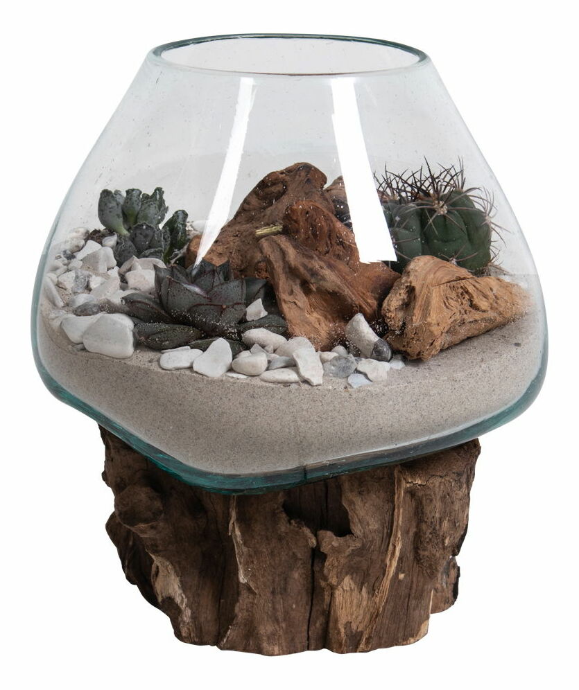Teakové dřevo, sklo, ocel