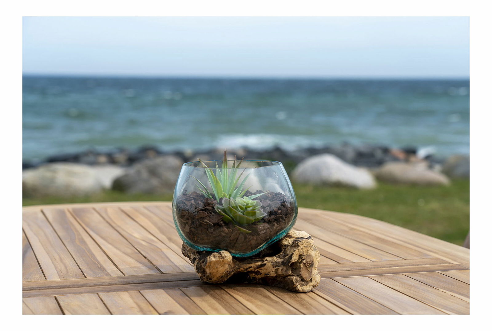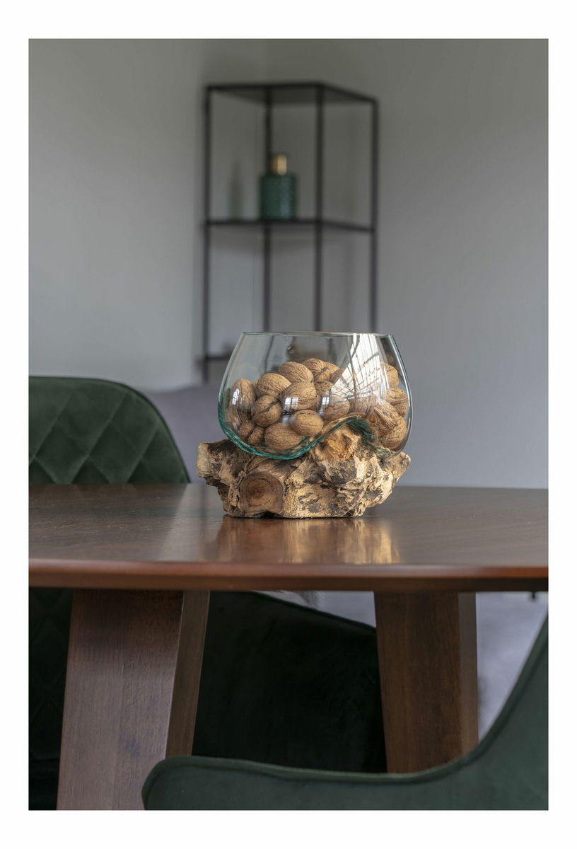 Teakové dřevo, sklo, ocel