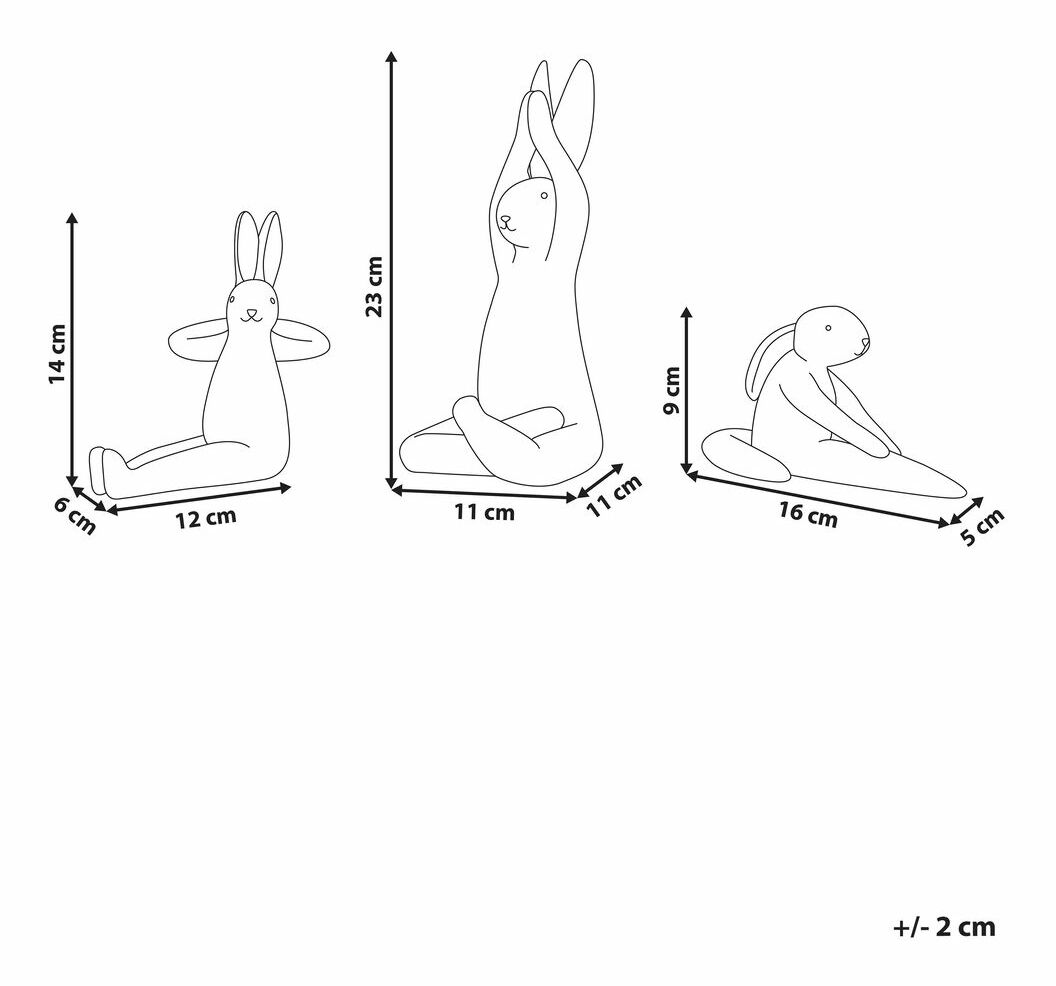 Tato sada 3 figurek ve tvaru velikonočních zajíčků je rozmarná a hravá a je dokonalým doplňkem jakéhokoli prostředí s velikonoční tématikou. Je ručně vyrobena z vysoce kvalitní keramiky a pyšní se klasickým bílým povrchem, který vytváří minimalistický vzhled. Umístěte tyto okouzlující dekorace na knihovnu, jídelní stůl nebo polici a užijte si sváteční atmosféru.