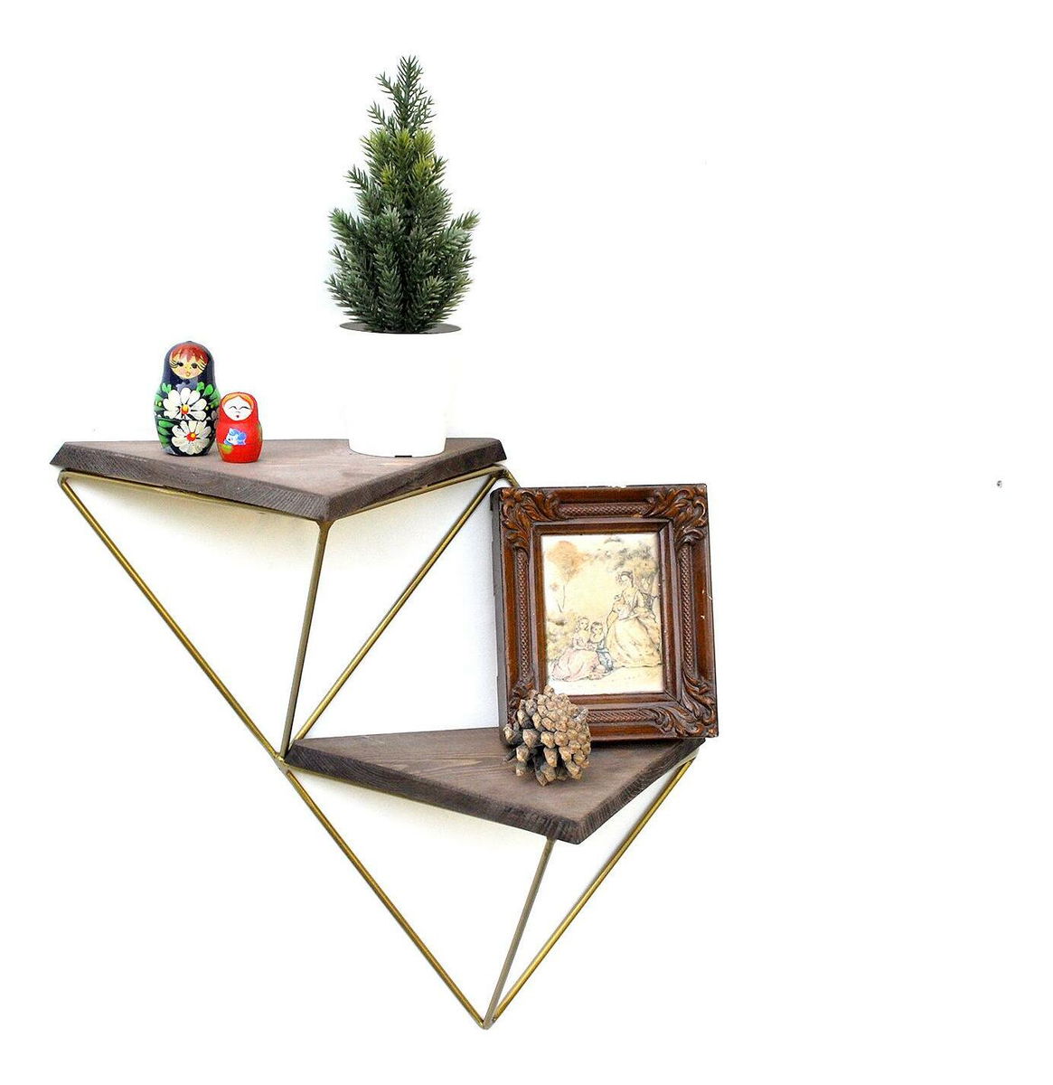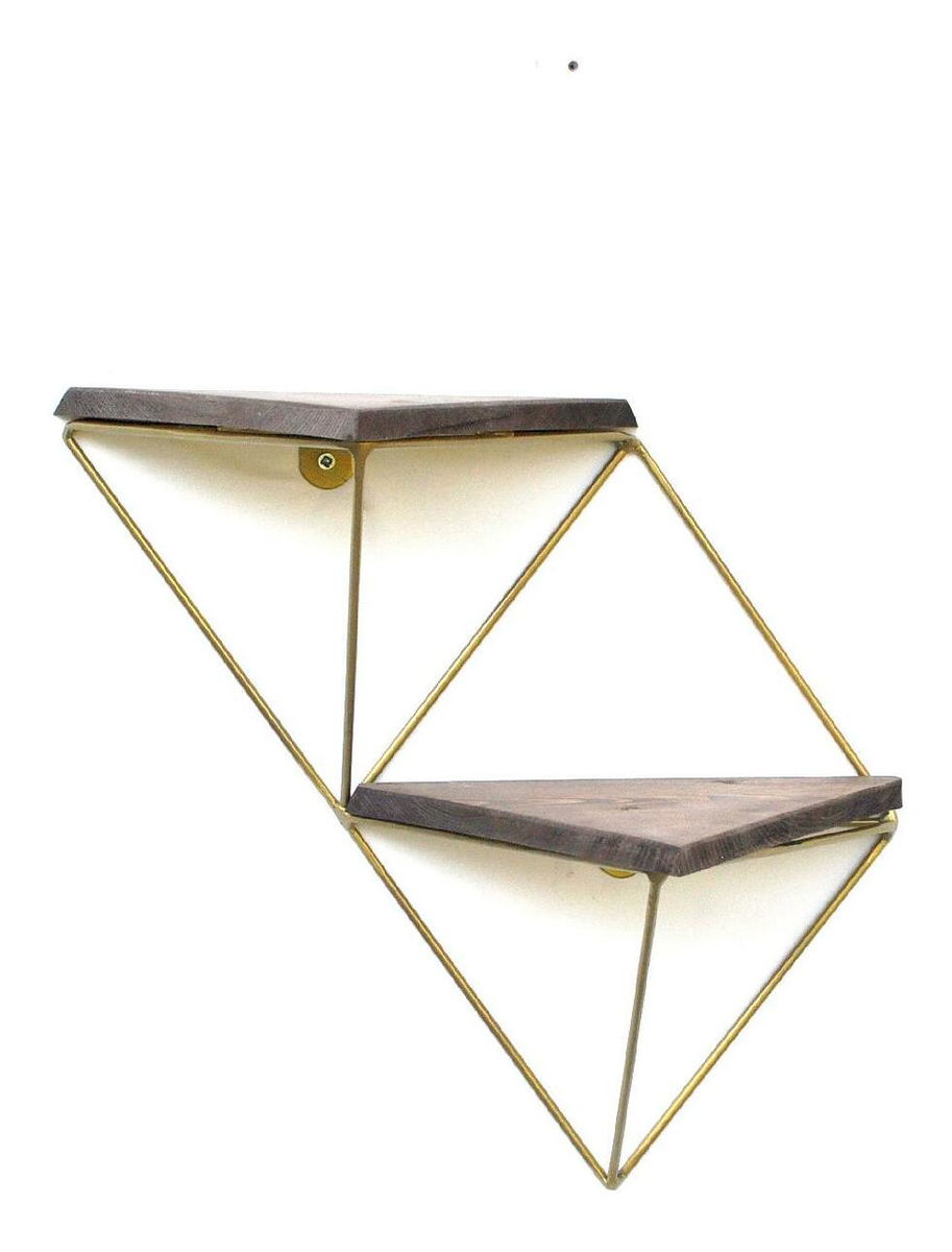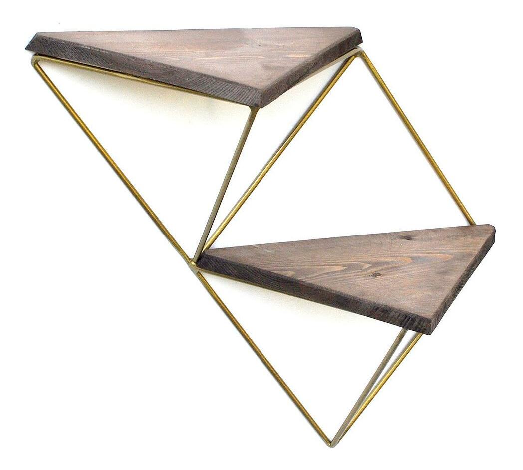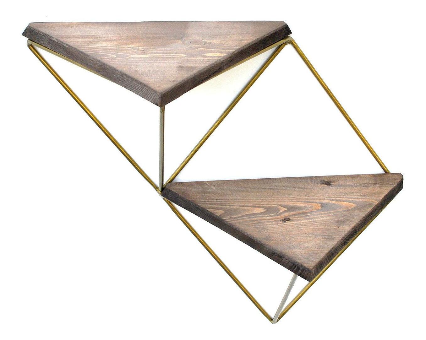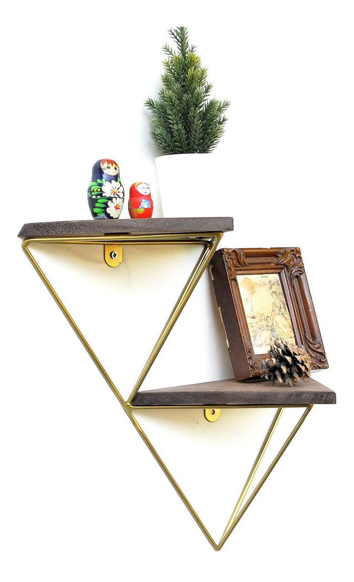 Dekorativní nástěnná police Duvelo 2 (ořech + zlatá)