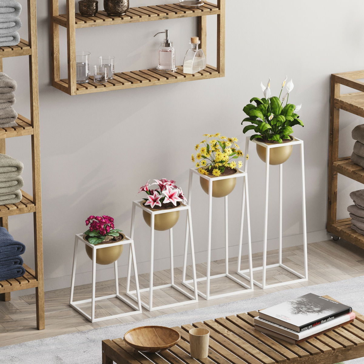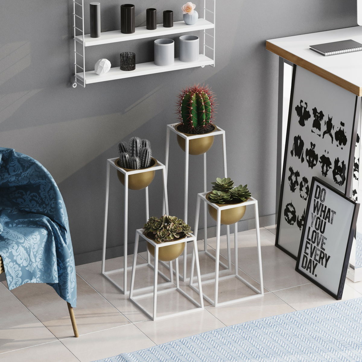 Dekorativní stojan na květiny Gwion (bílá + zlatá)