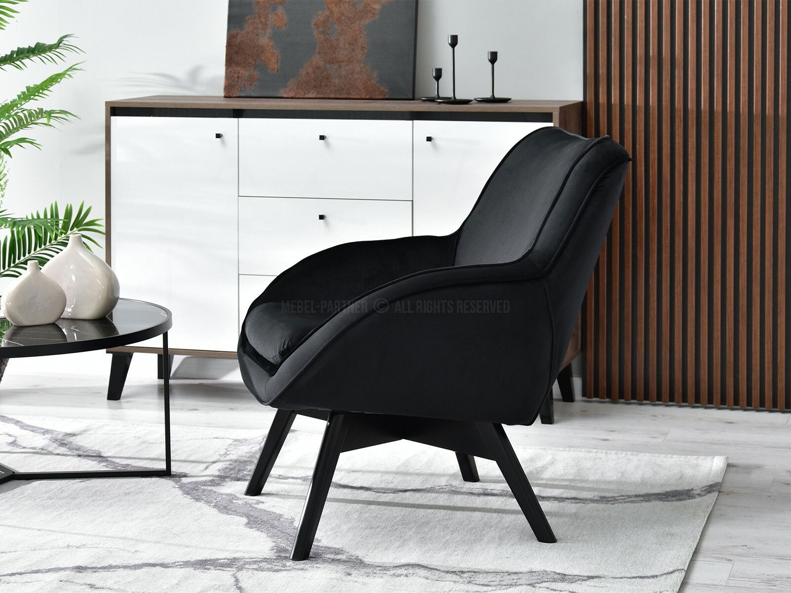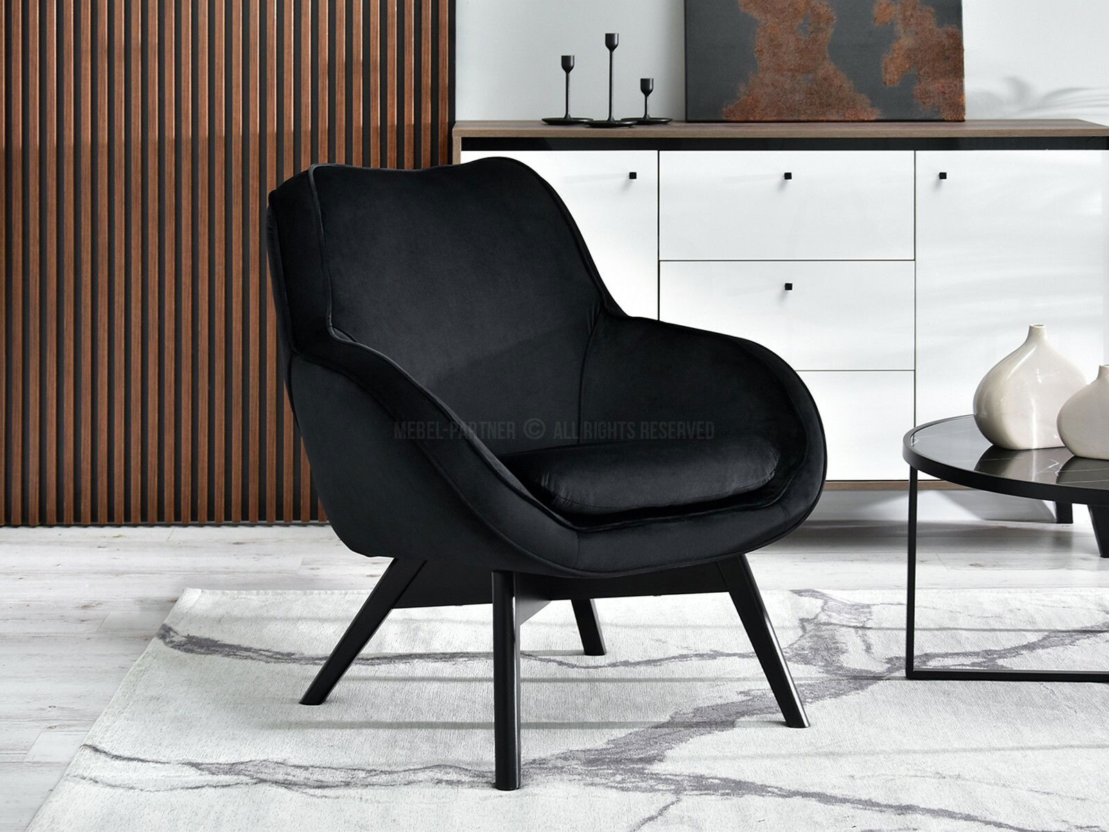 Designové křeslo Merch (černá + dub)