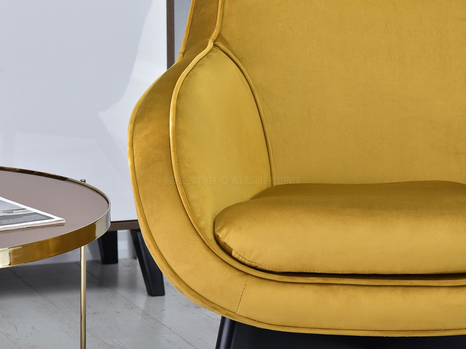 Designové křeslo Merch (zlatá + dub)