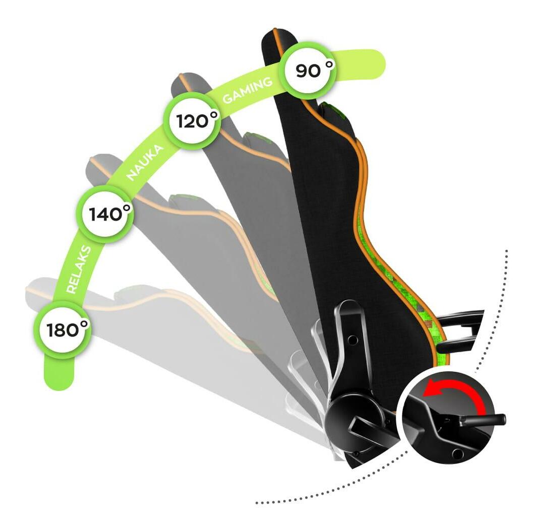 Všechny výhody herní židle jsou nyní dostupné také v mini verzi! Židle bude vhodná pro děti vysoké od 100 cm do 160 cm. Herní židle nejen skvěle vypadá, ale především zajišťuje správné držení těla. Speciální polštáře, osvědčené materiály a výplň a vhodný stabilní rám zaručují zdravé sezení. Rám židle je vyroben z oceli, což zaručuje bezpečnost a odolnost. Velký, větraný a vhodně profilovaný bederní polštář zajišťuje dokonalé vyrovnání páteře. Speciální popruhy umožňují nastavit výšku polštáře tak, aby vyhovovala vašim preferencím. Právě detaily jako polštář na krční svaly posilují správné držení těla. Díky němu získává krční páteř dodatečnou oporu, což snižuje pocit únavy a zlepšuje komfort při práci a zábavě. Polštář je odnímatelný, takže jej můžete použít jakkoli chcete. Mechanismus Siderest umožňuje rychlé sklopení zádové opěrky do libovolného úhlu s možností rozložení do ležící polohy. Pohodlné, výškově nastavitelné područky, vyrobené z měkkého materiálu odolného vůči deformaci, umožňují pohodlné opření rukou.