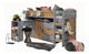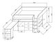 na přední straně postele je jedna hlavní vrchní police a čtyři další police, na straně se schody jsou police dvě